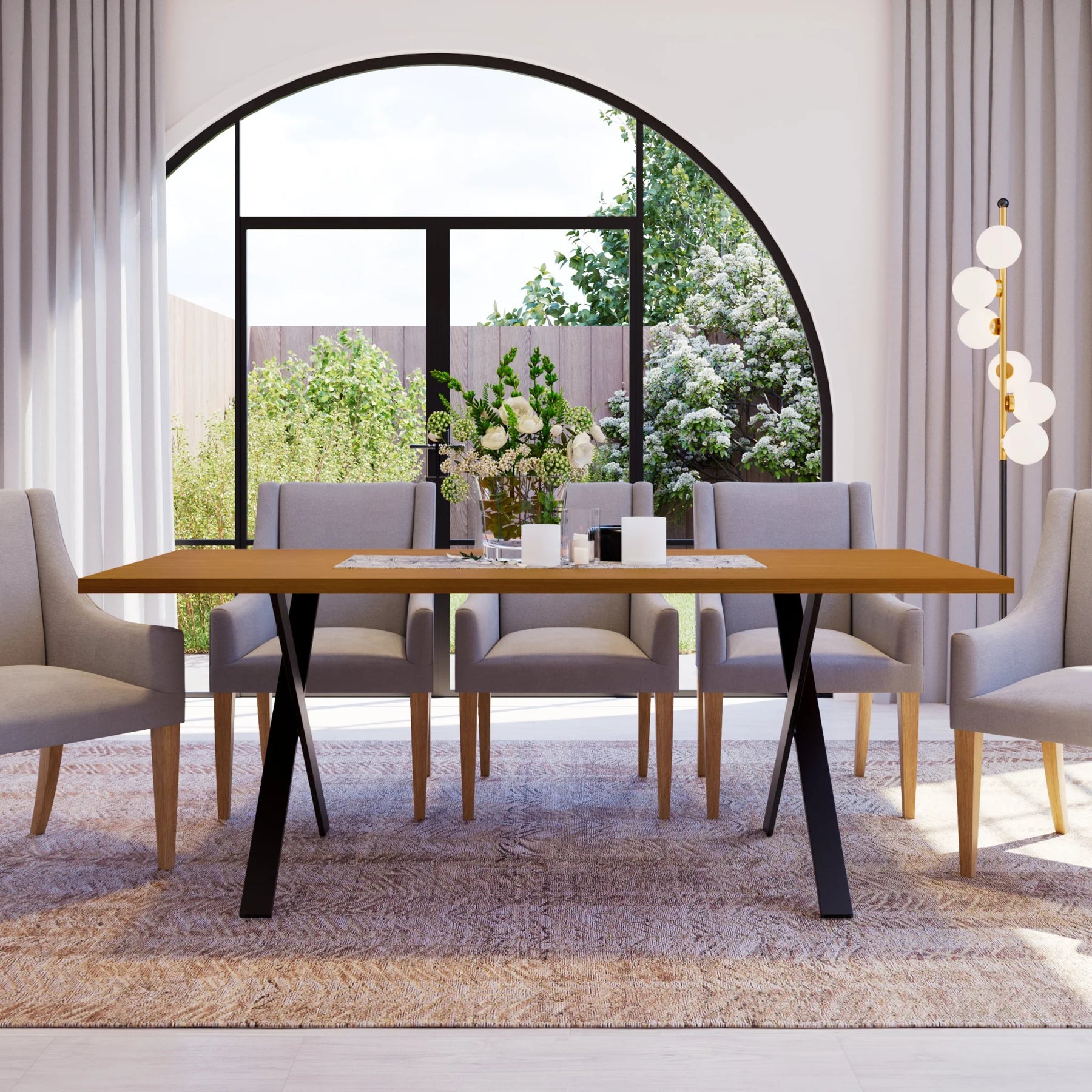 The Eleya oak dining table is perfect for interior or exterior design. The white clear oak finish in the top convene with the black metal legs. The Eleya dining table is giving you the urban chic style that you are looking for in your home. Perfect to serve up to 6-8 places dinner celebrations.