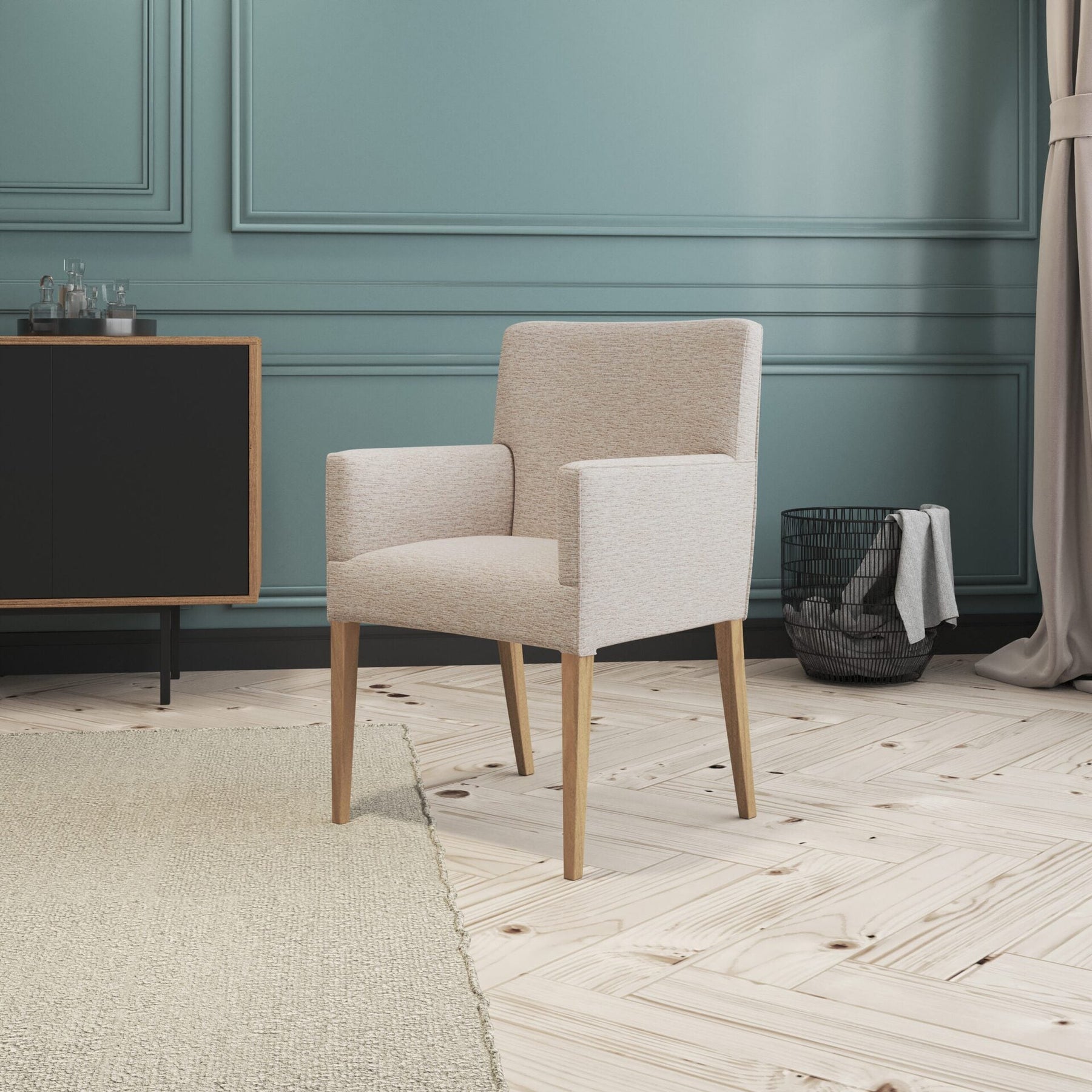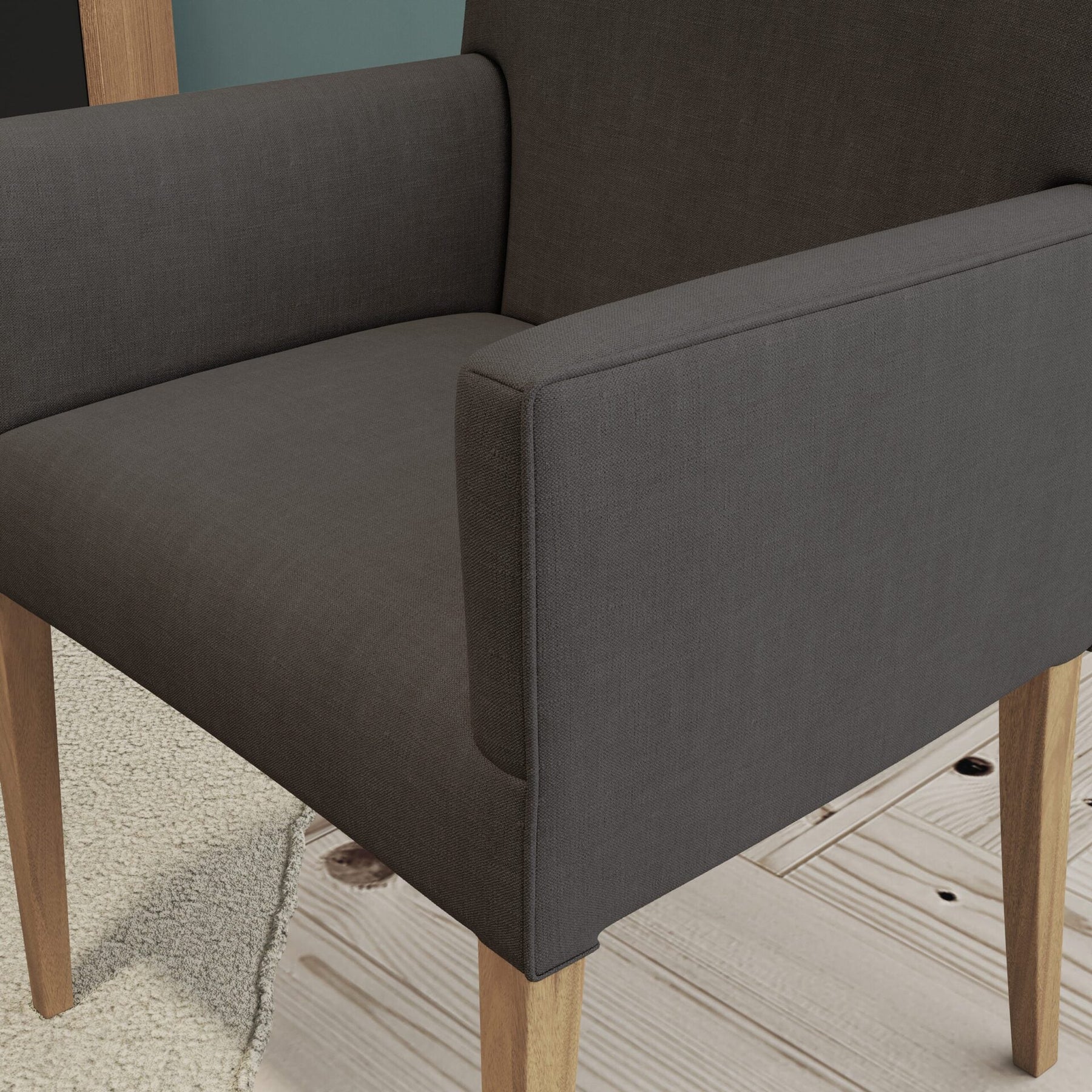 Our Urban dining carver is sleek and sophisticated that takes the best elements from Scandinavian design in a South African context. Upholstered in several high-quality fabrics (Hertex), this dining carver adds character to a living space, while the elegantly curved back creates a timeless silhouette. The generous upholstery and the comfortable arm rests make our Urban carver suitable for longer sittings. You could even use them as occasional chairs in the bedroom or living room. A great match with our Urban dining chair.The Urban range is our most economical choice. We have redesigned the Urban range in order to maximize quality for an affordable price point