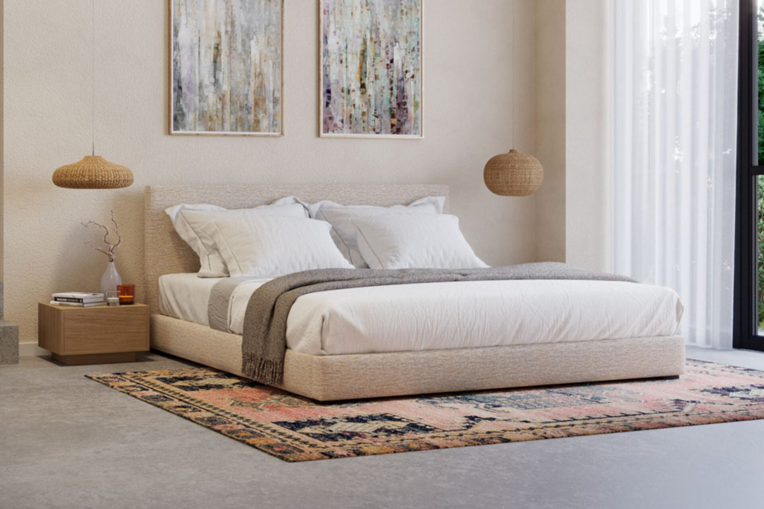 The Luanda low modern bed is made of high-quality fabric that is durable and long-lasting, with a touch of wooden feet to finish the look. It is designed to be low and is easy to assemble. This bed is perfect for those who want a modern look in their bedroom.