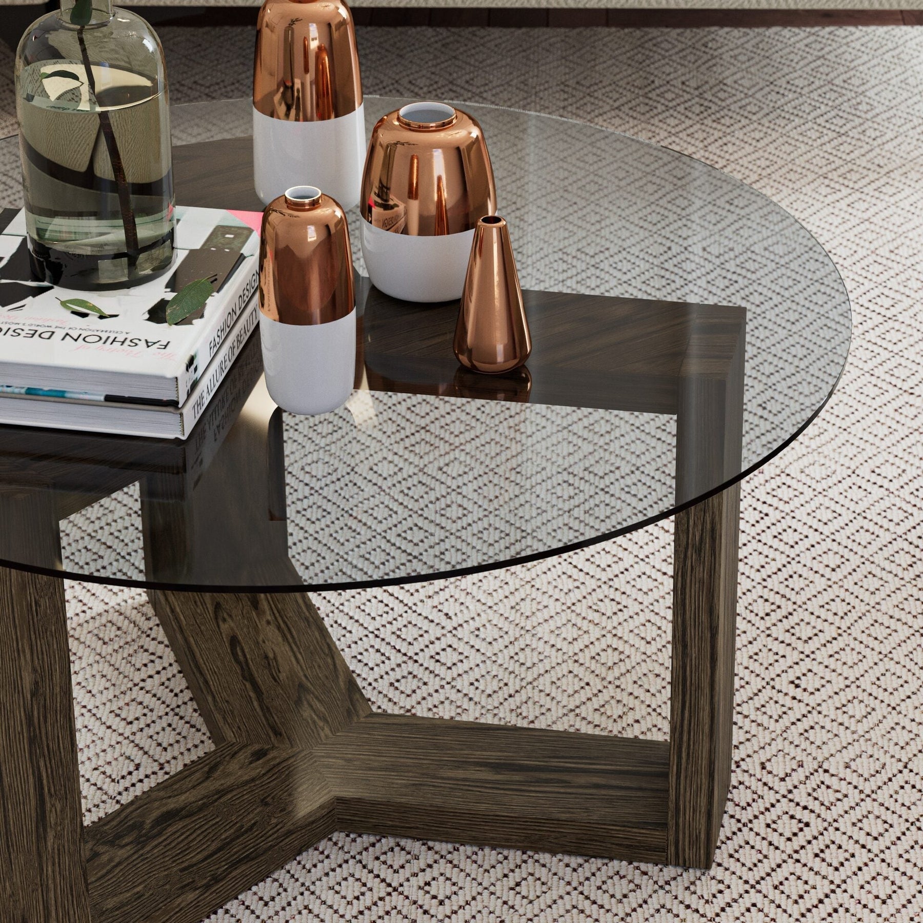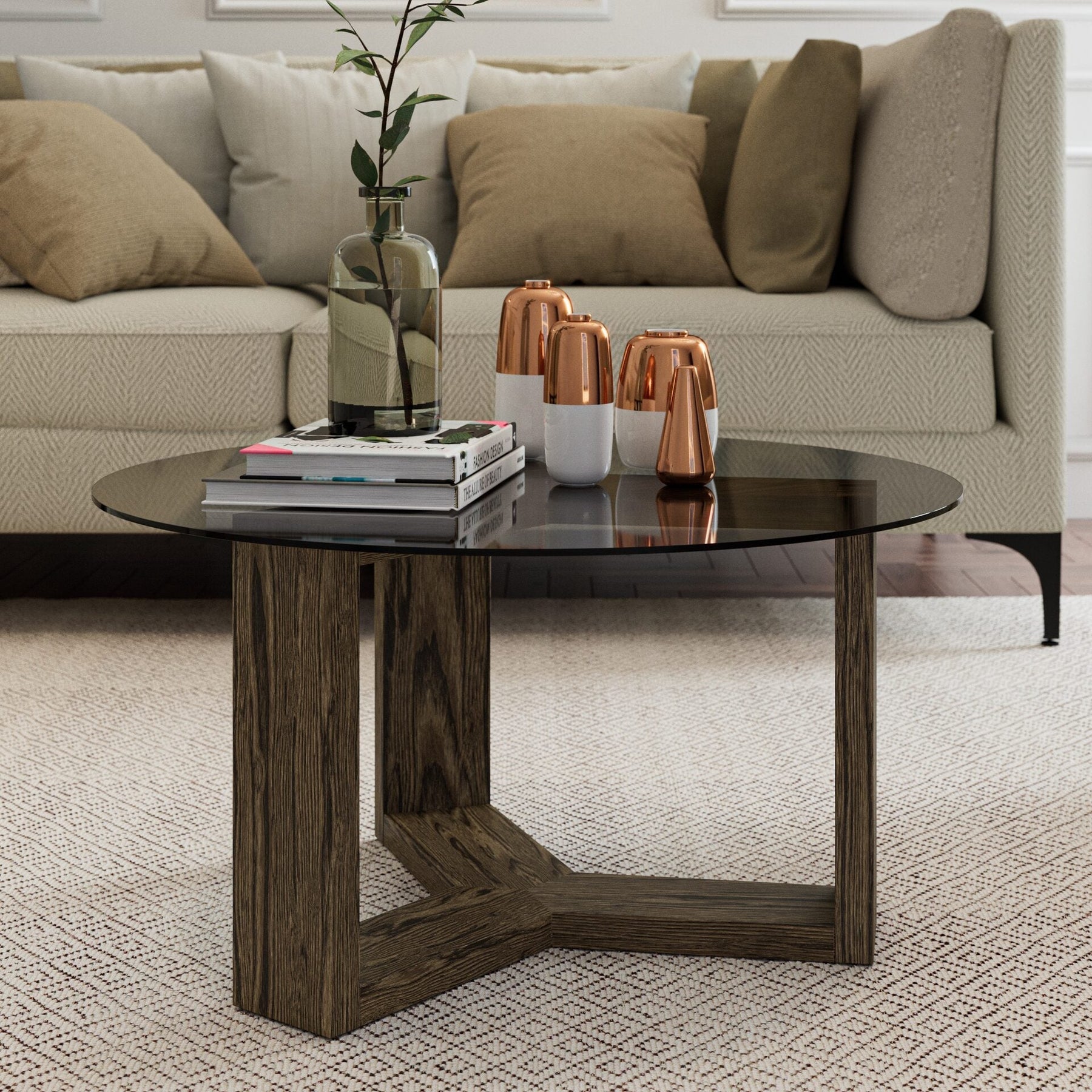 A solid oak base with a see through tempered smoke-glass top. Let us introduce you to our Hugo furniture family. The Hugo coffee table has a stunning round glass top (thoughened of course) and sits on a solid oak base with a stylish dark finish. Perfect for resting your drink, the Hugo coffee table brings intrigue and a modern classy edge to your living space. A perfect match with our Hugo dining table.