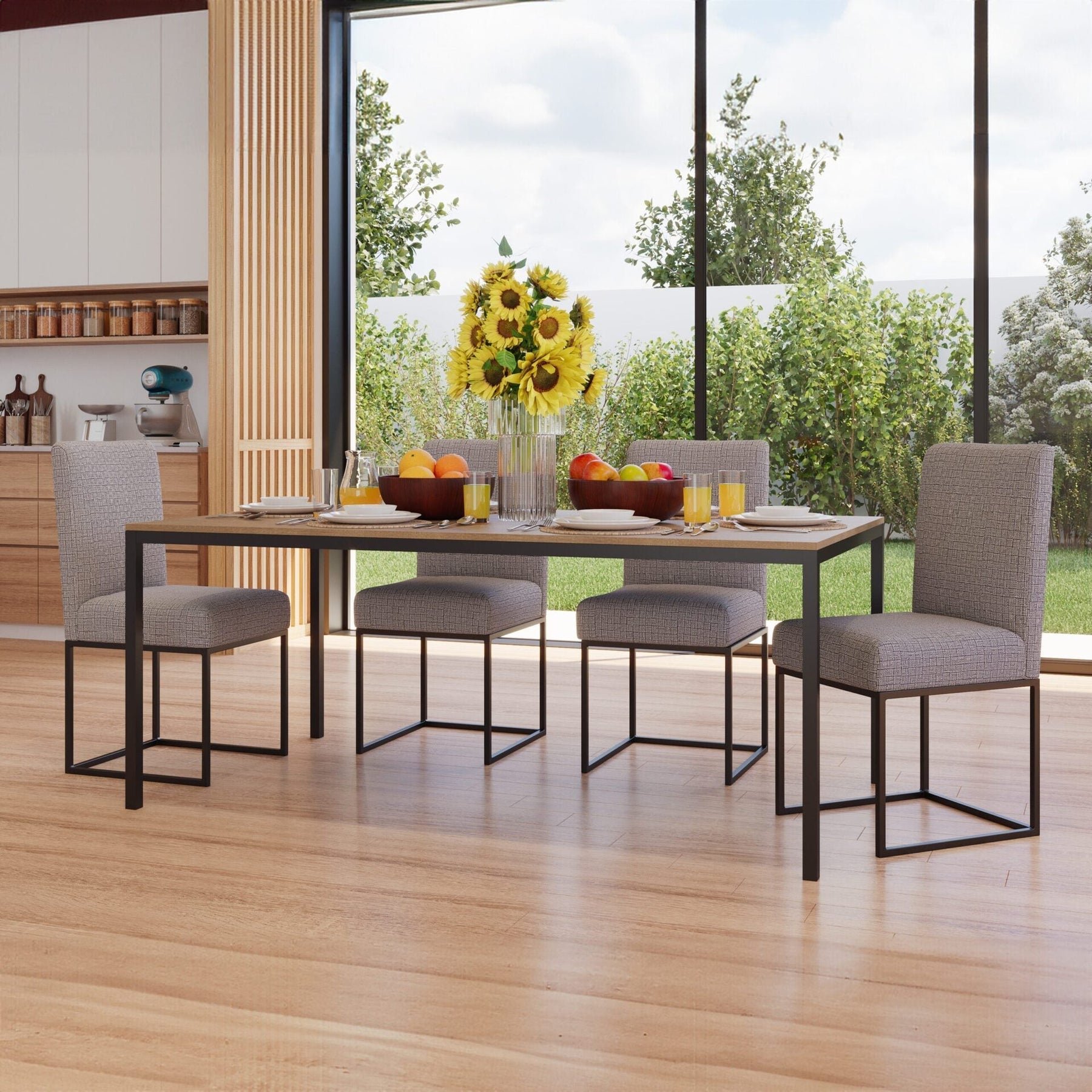 We love our bestsellers so much that we have decided to transform the Vena dining chair into a stool with a beautiful black matte frame. The Leon collection was born. The Leon dining chair has a lush design that unifies comfort and style making it the best upgrade to your dining area. The back and the seat have been designed for long conversations or just a quick bite at your dining table. We handpicked for you the best looking fabrics for this dining chair. Our tip: pair it with the Leon bar stool collection.