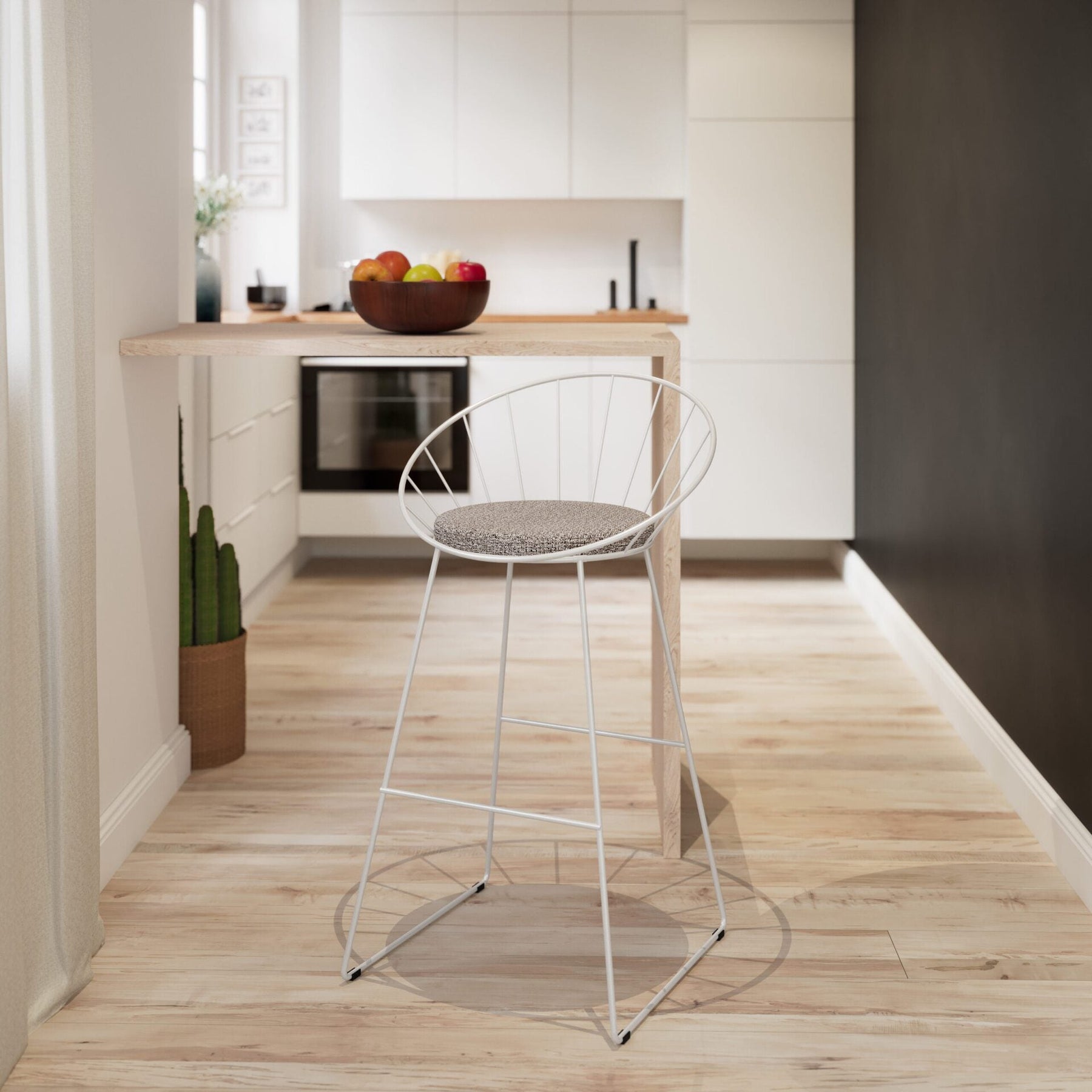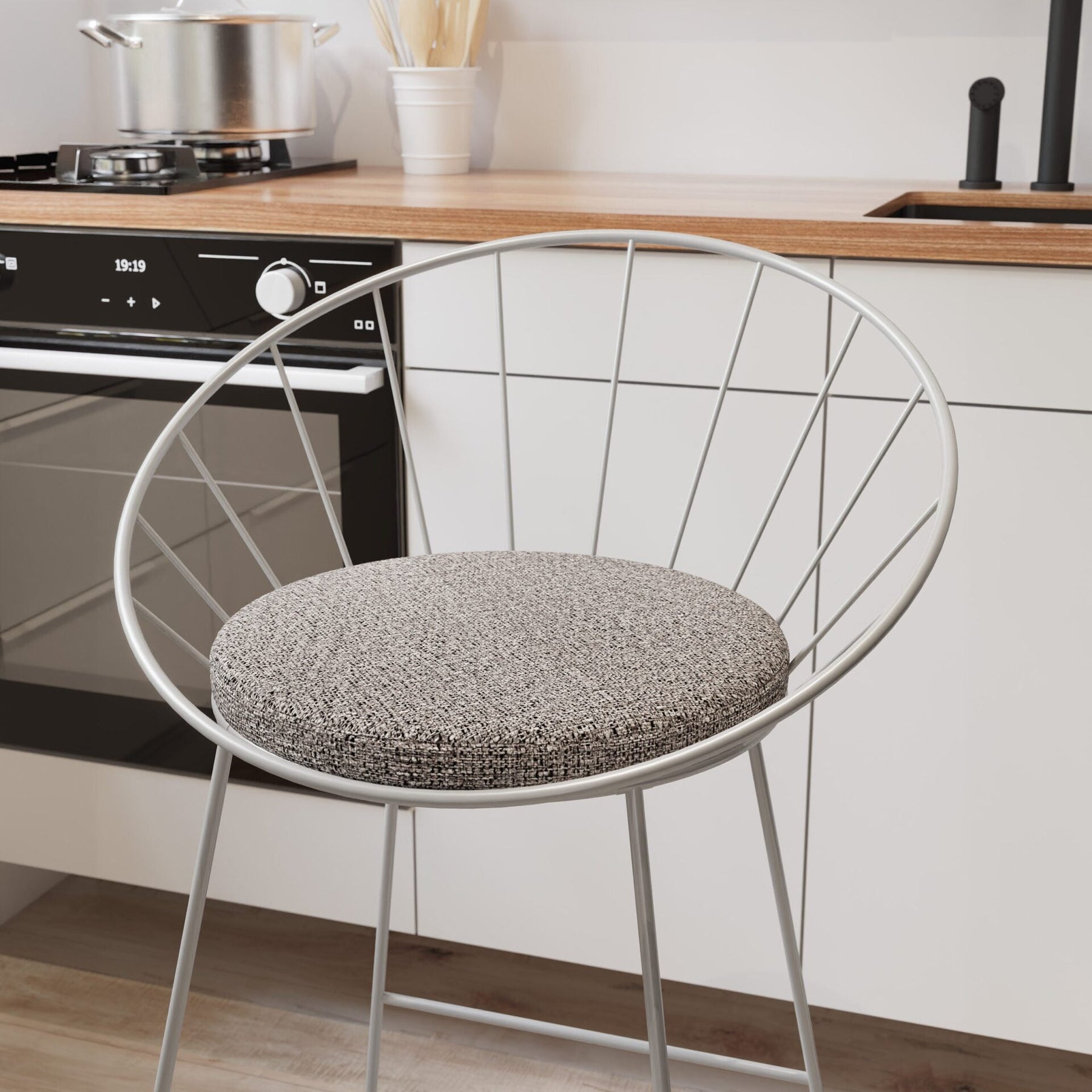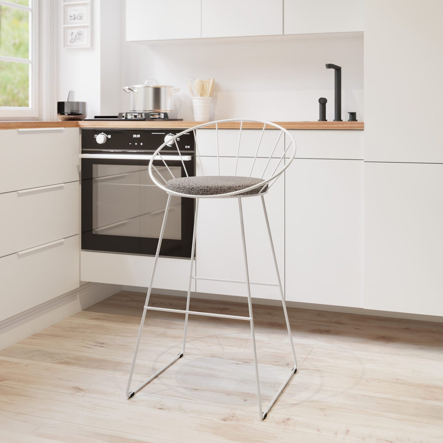 The wire barstool has many (Chinese) imposters, but this is not one. We have redesigned the classical wire barstool for the South African market. We made it sturdy, desirable and comfortable at the same time. Say ‘hi’ to new wire barstool. Both elegant and urban. Industrial design with a touch of elegance is a great way to describe our Orbit Bar Stools. Carefully hand crafted bent steel and with the soft fabric cushion make this bar stool desireable to the eye, but also comfortable to sit on. Great for kitchens, covered outdoor areas or the hospitality industry. Available in black or white.